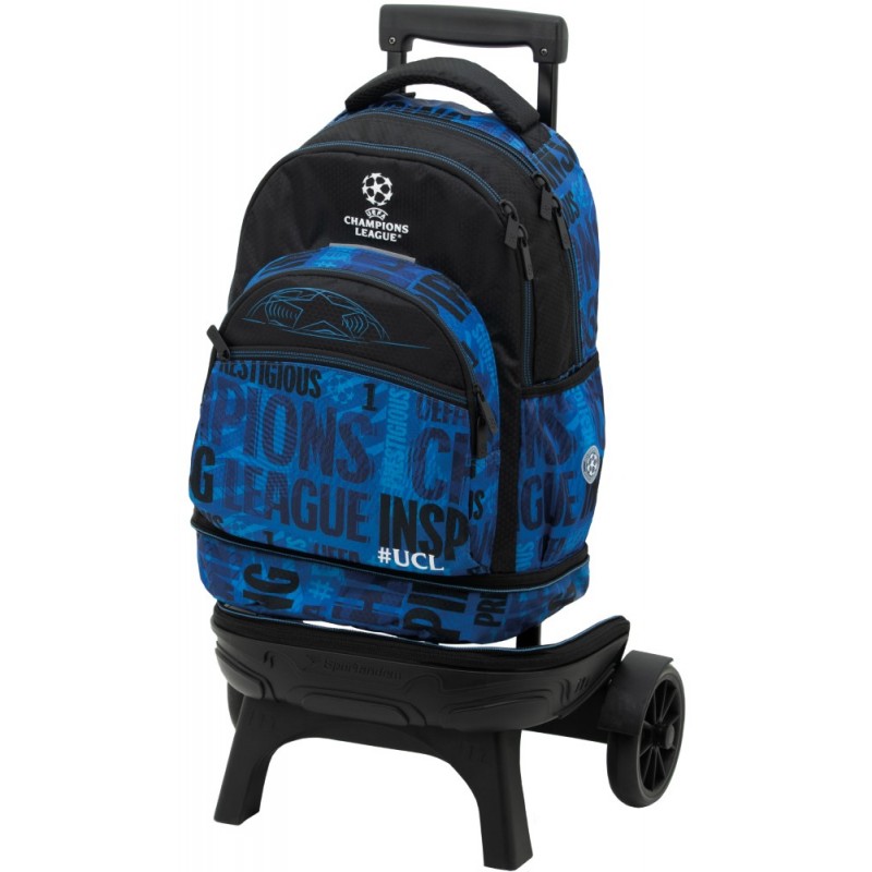 • Mochila escolar con carro desmontable. 2 usos en 1: el uso de Carro fijo de base resistente. Con dos ruedas grandes y silenciosas para lograr un mejor movimiento y estabilidad. La posición e inclinación de sus dos patas delanteras evitan el volcamiento del carro y el otro uso de solo mochila, pues se puede separar del carro a traves de la cremallera que los une. Tiene dos compartimientos amplios y un bolsillo frontal con un organizador interno. Tirantes ergonómicos de espuma transpirable con velcro al final que se adhieren al espaldar para que no se arrastren por el suelo. Bolsillo en el lateral derecha para llevar una botella . Asa acolchada de agarre superior.