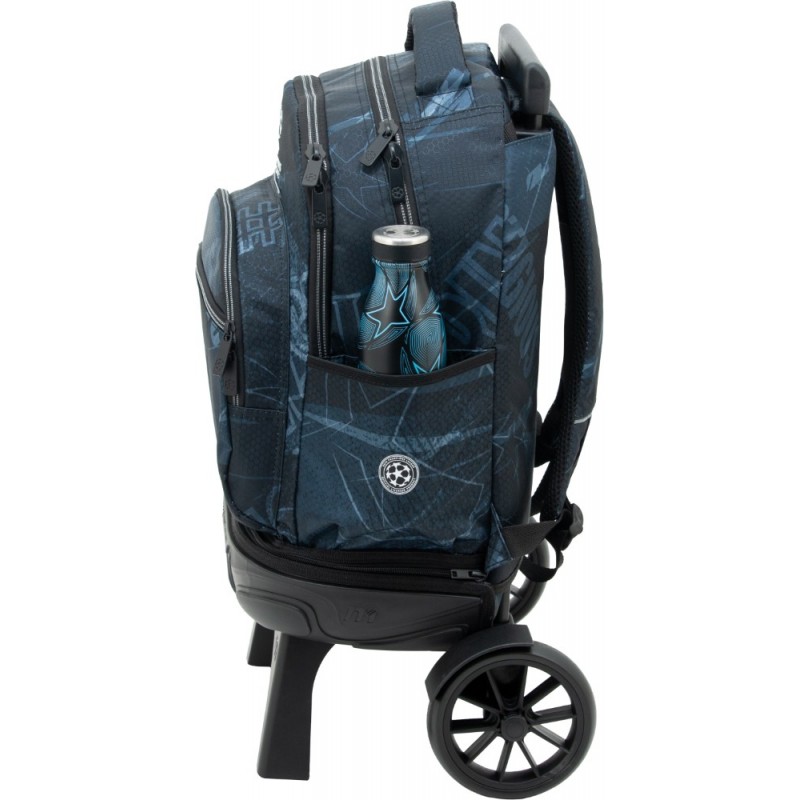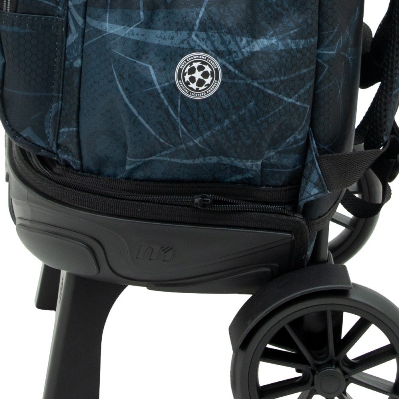 Bolsillo organizador interno con bolsillo, hueco para bolis y cuelga llaves. Etiqueta identificativa de Champions Bolsillo lateral para botella. Tiras reflectantes Lavable