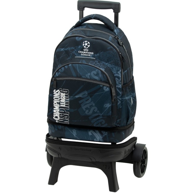 • Mochila escolar con carro desmontable. 2 usos en 1: el uso de Carro fijo de base resistente. Con dos ruedas grandes y silenciosas para lograr un mejor movimiento y estabilidad. La posición e inclinación de sus dos patas delanteras evitan el volcamiento del carro y el otro uso de solo mochila, pues se puede separar del carro a traves de la cremallera que los une. Tiene dos compartimientos amplios y un bolsillo frontal con un organizador interno. Tirantes ergonómicos de espuma transpirable con velcro al final que se adhieren al espaldar para que no se arrastren por el suelo. Bolsillo en el lateral derecha para llevar una botella . Asa acolchada de agarre superior.
